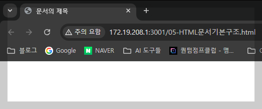 작성된 HTML 문서는 웹 브라우저에서 열면 시각적인 웹페이지로 출력됩니다.