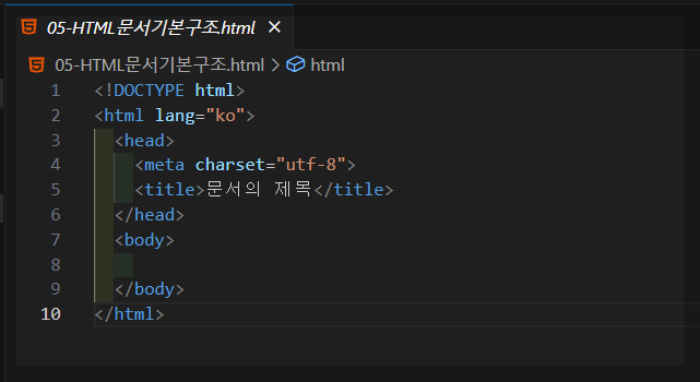 .html 확장자를 가진 HTML 문서를 작성하게 됩니다.