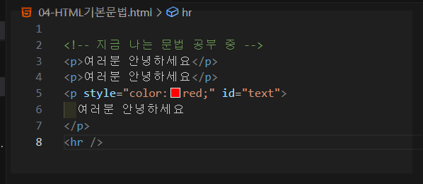 | <p> | 단락(Paragraph) 태그 | <p>Hello</p> |