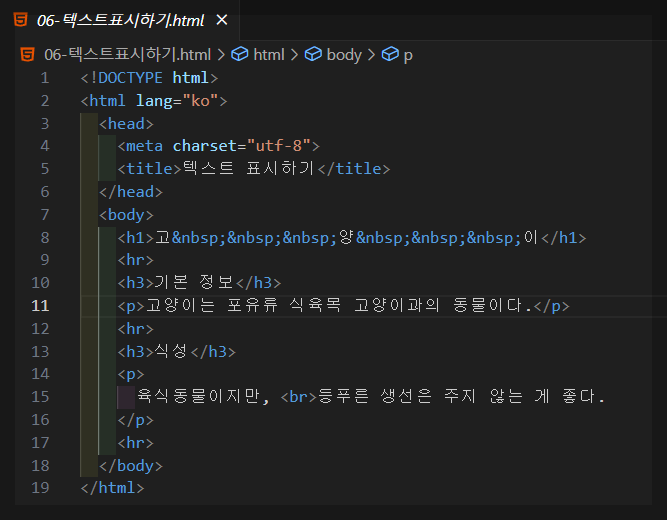 텍스트 관련 태그 중에서도 가장 기본적이고 필수적인 요소입니다.