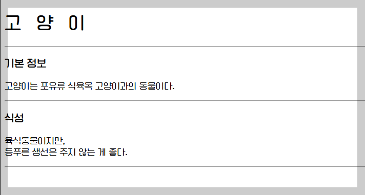 시각적으로 명확하게 나눠주는 수단이 바로 <hr> 태그입니다.