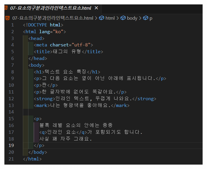 인라인 요소 중에는 텍스트에 스타일을 적용할 수 있는 태그들이 존재합니다.