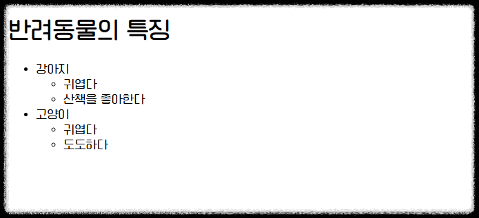 목록 안에 또 다른 목록을 넣는 중첩 구조도 HTML에서는 간단히 구현할 수 있습니다.
