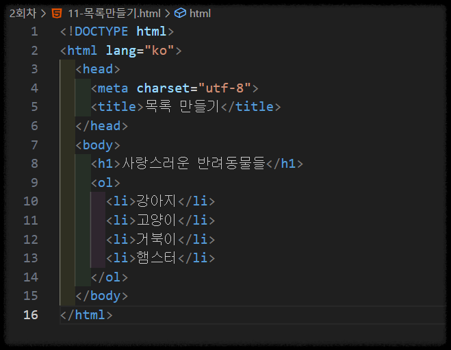 순서 목록(ordered list)으로 번호 매기기