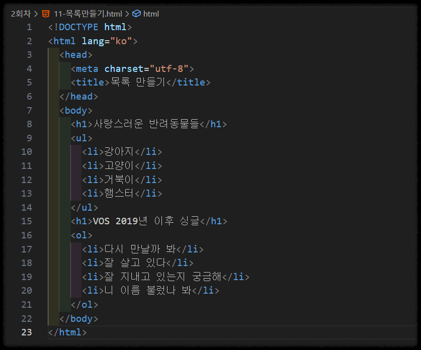HTML 목록 태그의 실사용 예제를 통해 구조 이해하기