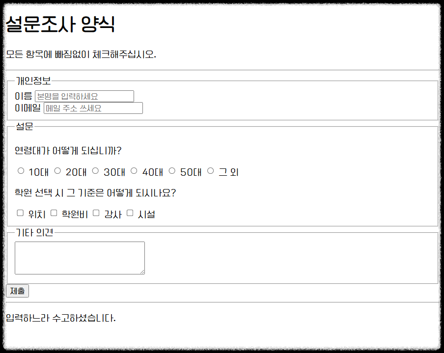 실무에 바로 써먹는 설문조사 양식, HTML로 직접 만들어보세요