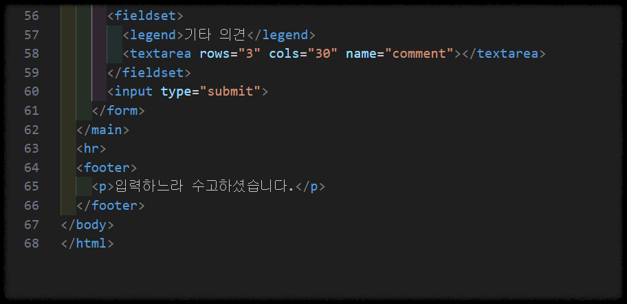 <footer><p>입력하느라 수고하셨습니다.</p></footer>